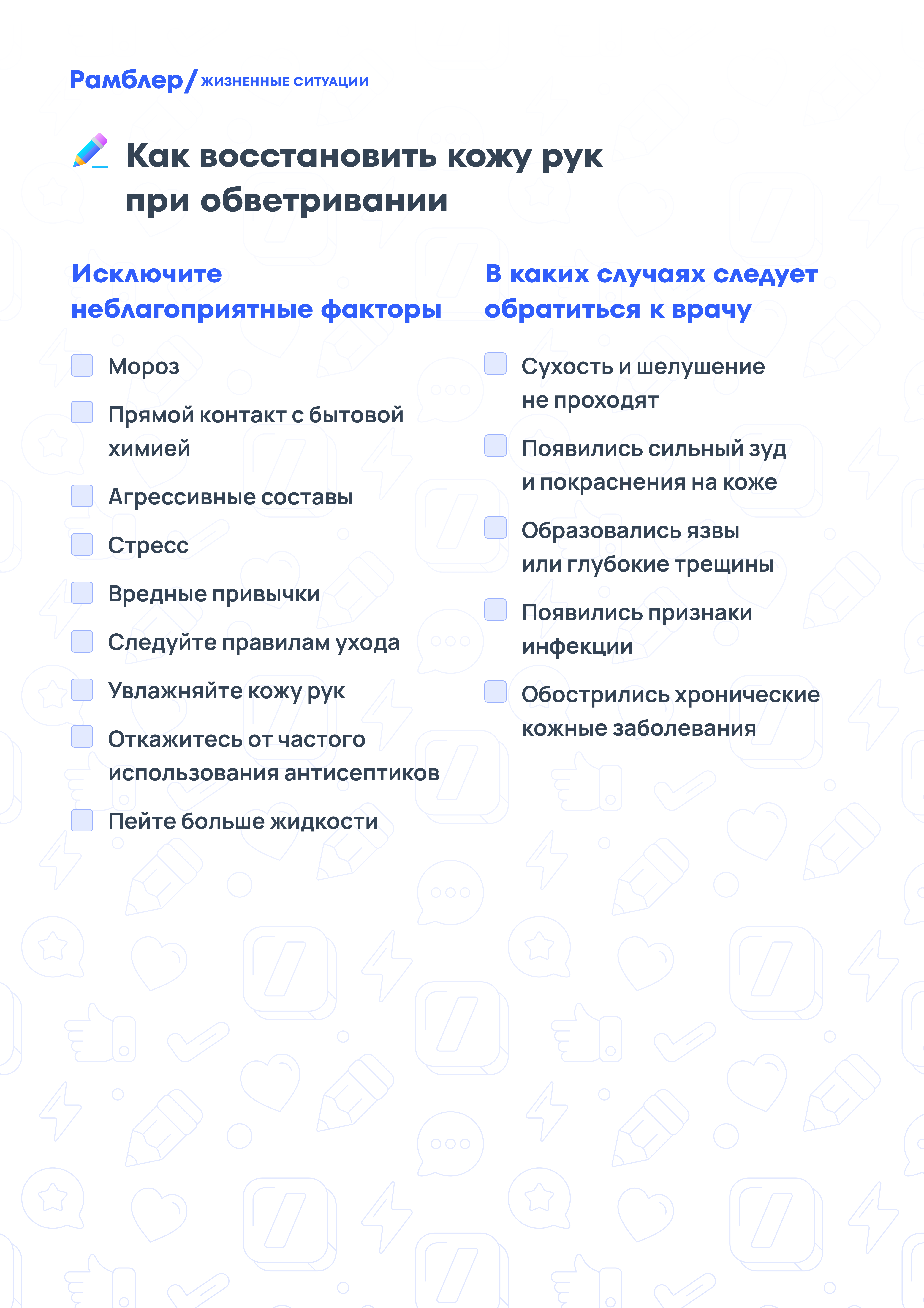 При обветривании могут появиться сухость, шелушение и покраснения. Составили памятку, которая подскажет, как восстановить кожный барьер и избавиться от неприятных ощущений.