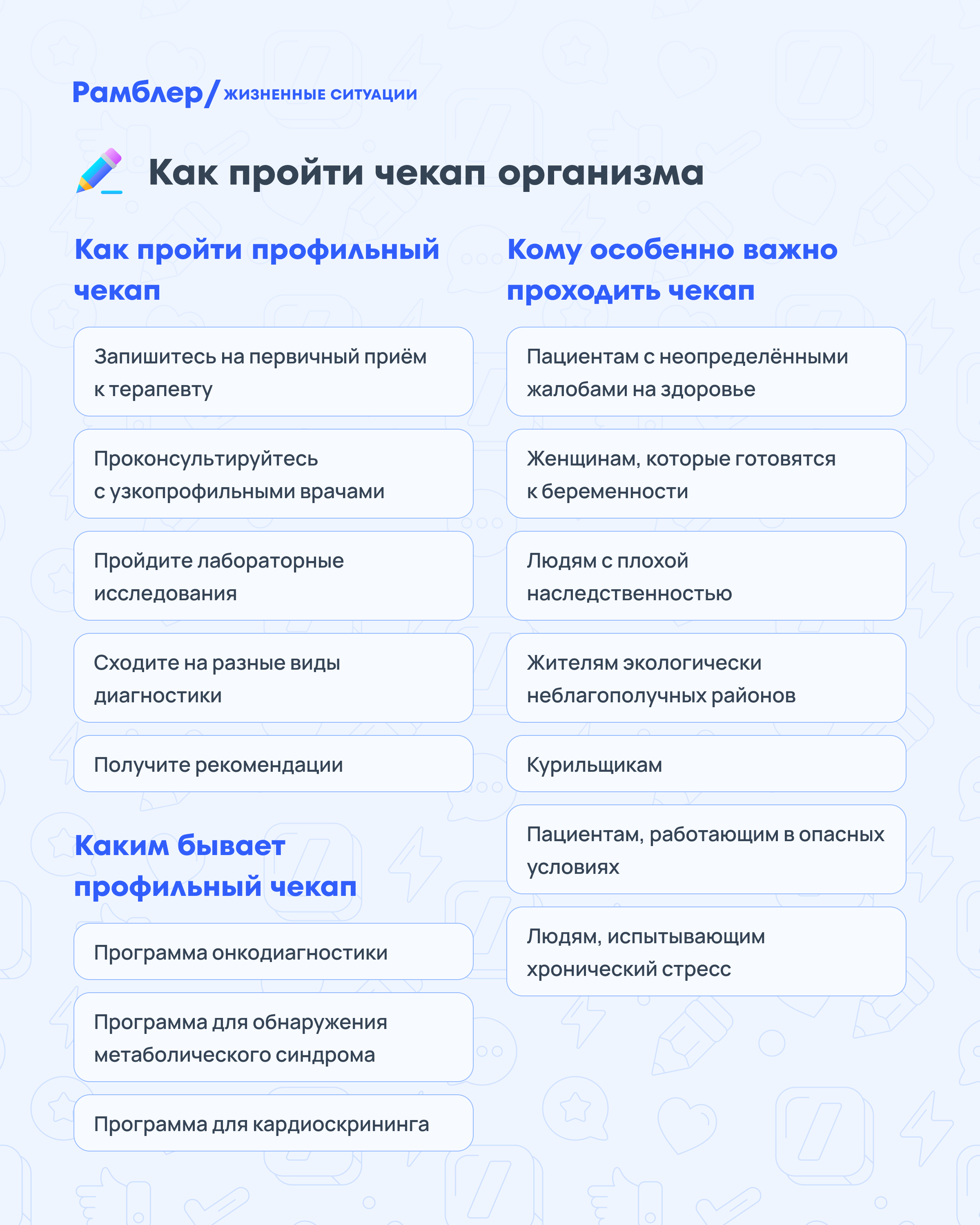 Как пройти чекап