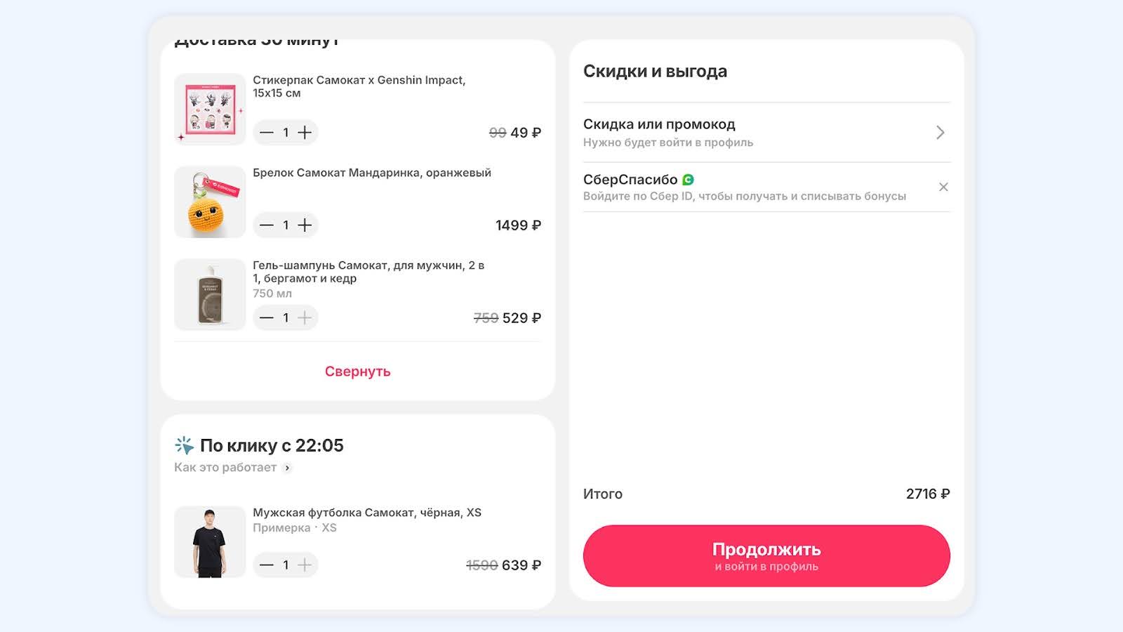 В Самокате продают гигиенические товары, одежду и брелоки, которые отлично подойдут мальчикам-подросткам. Среди популярных позиций: