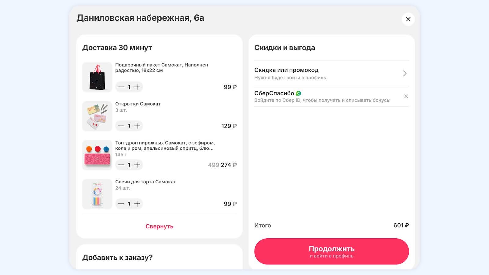 - Наберите товары минимум на 1000 рублей, для детской карты — минимум на 100 рублей.