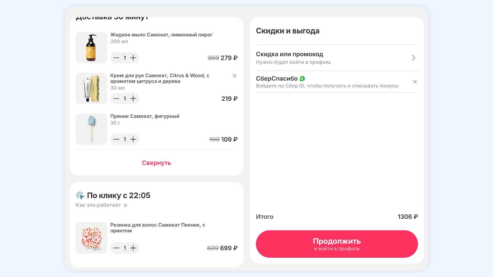 - С 12 по 14 ноября в Самокате будет действовать акция «Товары за один рубль» при оплате от 1200 рублей по карте Сбера.